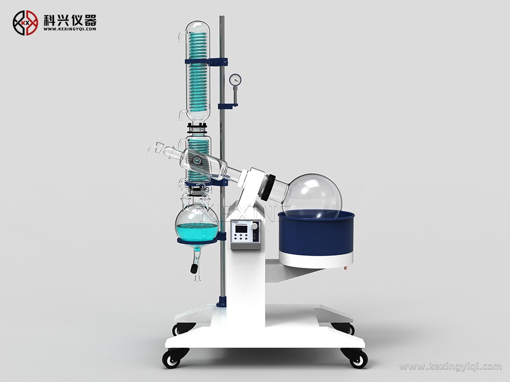 旋轉(zhuǎn)蒸發(fā)儀主要用于醫(yī)藥、化工和生物制藥等行業(yè)的食品等領(lǐng)域的中試,進(jìn)行濃縮、結(jié)晶、干燥、分離及溶媒回收。有大容量、大口徑旋轉(zhuǎn)蒸發(fā)瓶,置于水浴中,邊旋轉(zhuǎn)邊加熱,使溶液高效擴(kuò)散蒸發(fā)。產(chǎn)品可與循環(huán)水式多用真空泵、隔膜真空泵、低溫循環(huán)(真空)泵,循環(huán)冷卻器,恒溫循環(huán)器,低溫冷卻液循環(huán)泵等配套組成系統(tǒng)裝置。其原理為在真空條件下,恒溫加熱,使旋轉(zhuǎn)瓶恒速旋轉(zhuǎn),物料在瓶壁形成大面積薄膜,高效蒸發(fā)。溶媒蒸氣經(jīng)高效玻璃冷凝器冷卻,回收于收集瓶中,大大提高蒸發(fā)效率。特別適用對(duì)高溫容易分解變性的生物制品的濃縮提純。